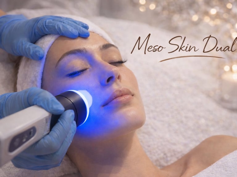 Meso Skin Dual de Utsukushy es un tratamiento facial avanzado de aparatología que rejuvenece la piel de forma no invasiva y sin dolor. Utiliza una combinación de electroporación, microcorrientes y fototerapia LED para favorecer la penetración de activos cosméticos y estimular la regeneración celular.